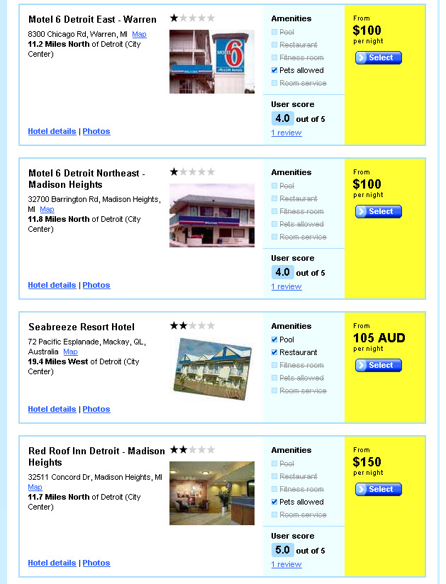 One of these things is not like the others, one of these things isn't the same. Found this while seeing what hotel rooms are going for Super Bowl weekend (hence the higher prices).