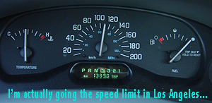 Since I couldn't get my nice price deal from Budget due to the cancellation, it was off to Alamo. A nice little temporary scare there when they couldn't find my reservation (when I say B-U-R-G-E-R, I say it for a reason. I really just need to change my last name to "Burgerwithayou"). Alamo's excellent inventory control system involved them giving me the keys to a car and saying "just keep using the panic button until you find it." I found my car, complete with it's Québec plates and metric odometer. Je suis entré dans ma voiture et j'étais sur mon chemin à Hollywood. J'ai rencontré Matt dans Hollywood près de Studio City et nous n'étions pas en ligne à UCLA. Pardonnez-moi? Fine, I'll go back to English. The car just does that to you.