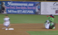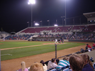 Nothing really spectacular here, your typical early 90s minor league stadium. The theme for the night was "ESPN 710 Night", which means the major sports station in L.A. hit the 210 and came down for a night of minor league ball. One of their main hosts threw out the first ball, while another sang the anthem. The rendition was pretty bad except for the fact he actually went for the Wayne Messmer-like high notes at the end and hit them. Why couldn't you put your effort on the rest of the song? The one amusing thing Tremor the Mascot did was destroy a Barney doll, which was a hit with 95% of the audience but traumatized the under 2 set for life. The food was varied but unspectacular, my frozen lemonade was mostly mush. While leaving the game, they passed out loaves of bread in some sort of bizarre promotion. It took me a while to explain to the guy why I really couldn't use the bread. |