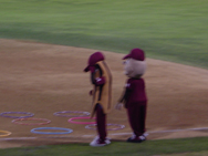 PeaNUT, Modesto's primary mascot and a lineage to their former long time parent team, the Oakland A's. |