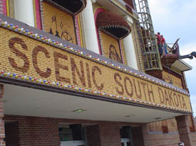 First real stop in South Dakota is the Corn Palace, a tribute to the crop that makes the Plains so great. Each year, the exterior building is redecorated with corn husks and various other agricultural products in iconic mural form. What you may not know about the building is that it is also the town of Mitchell's auditorium and is used for concerts and is the home court for several area basketball teams.